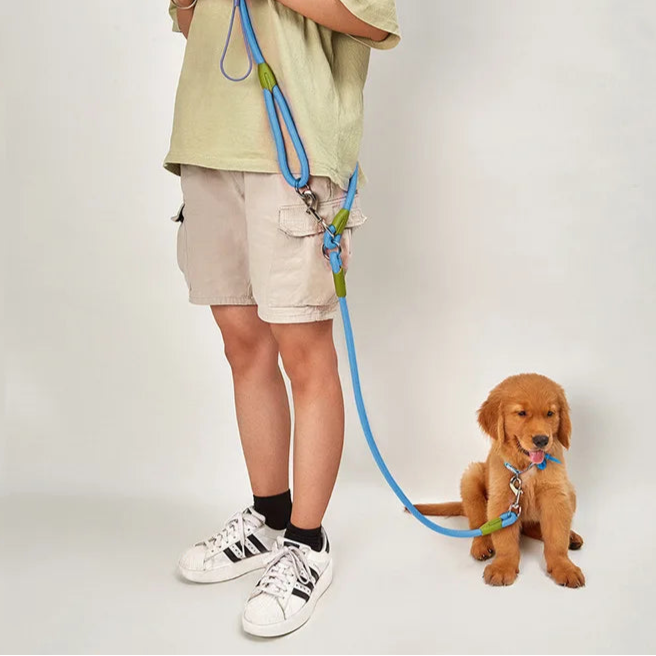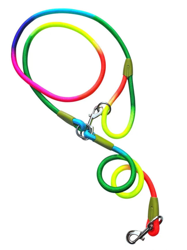 Beautiful and strong leash for dogs of all sizes. It can be worn close to the body and leaves your hands free for walking. You see it strong and sturdy with a thickness of 1.2cm and a length of 2.4 meters. Very vibrant colors. Highly recommended for large dogs